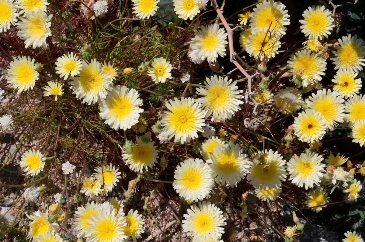 They hit the ground. Actually, they hit a desert dandelion leaf and