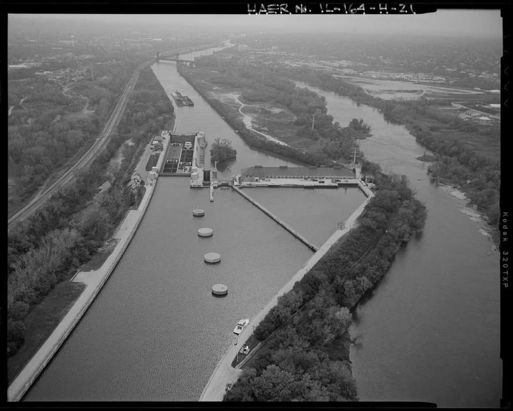Sanitary and Ship Canal. They went through the lock (see photo of similar lock) that lowered them